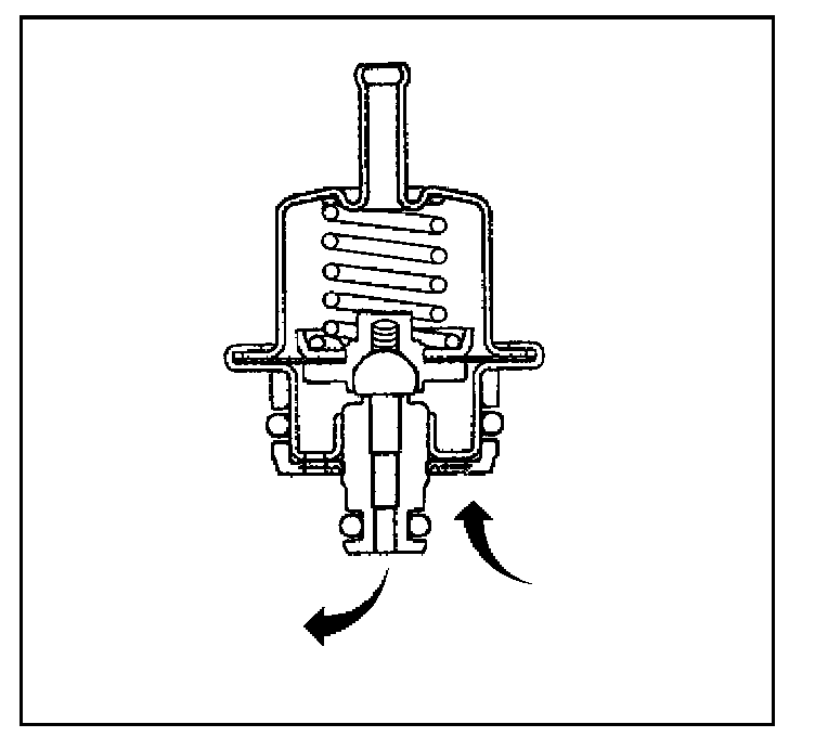The fuel pressure regulator is a diaphragm relief valve. The diaphragm has fuel pressure on one side and regulator spring pressure on the other side. The fuel pressure regulator maintains a constant pressure differential across the fuel injectors under all operating conditions. The fuel pressure regulator compensates for engine load by increasing fuel pressure as the engine vacuum drops.