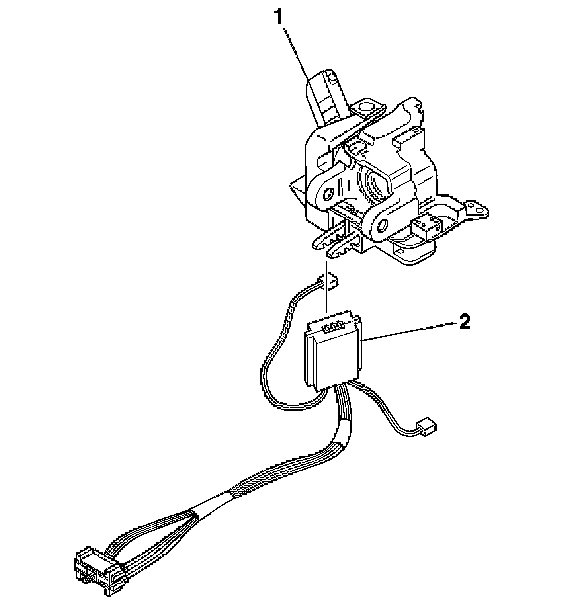 7. Remove the passkey connector from the ignition lock cylinder case (2).
