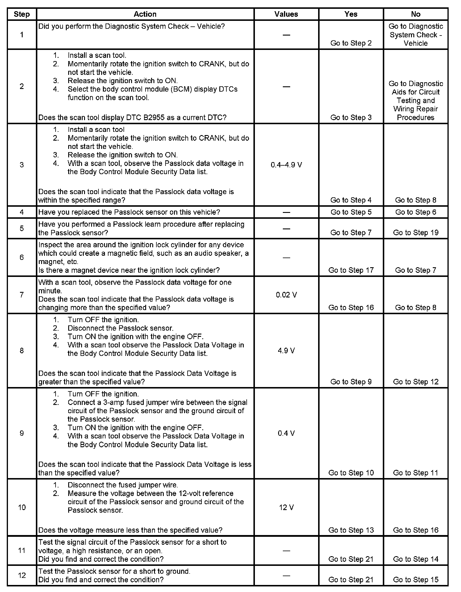 12. This step tests for a short to ground in the Passlock signal circuit.