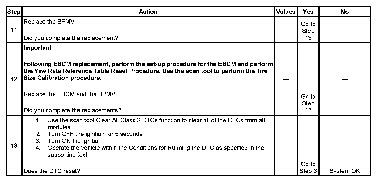 ^ An ECE 13 response may occur. Refer to ABS Description and Operation for a complete description of ECE 13.