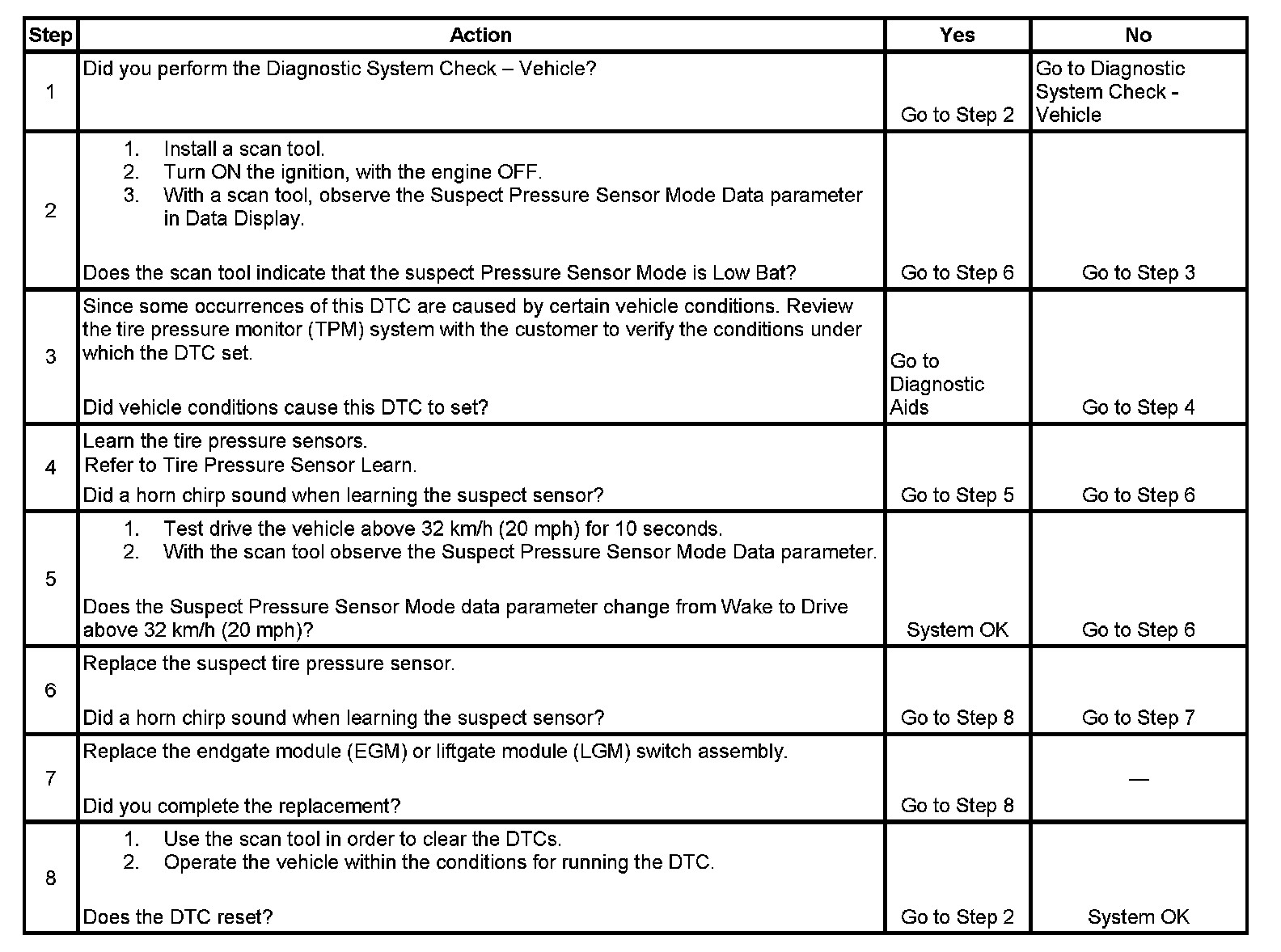 ^ Occasionally sensors can become mislocated due to previous tire rotations where the sensor learn procedure was not performed. Always learn the sensors to ensure the DTC set is for that actual physical corner of the vehicle.