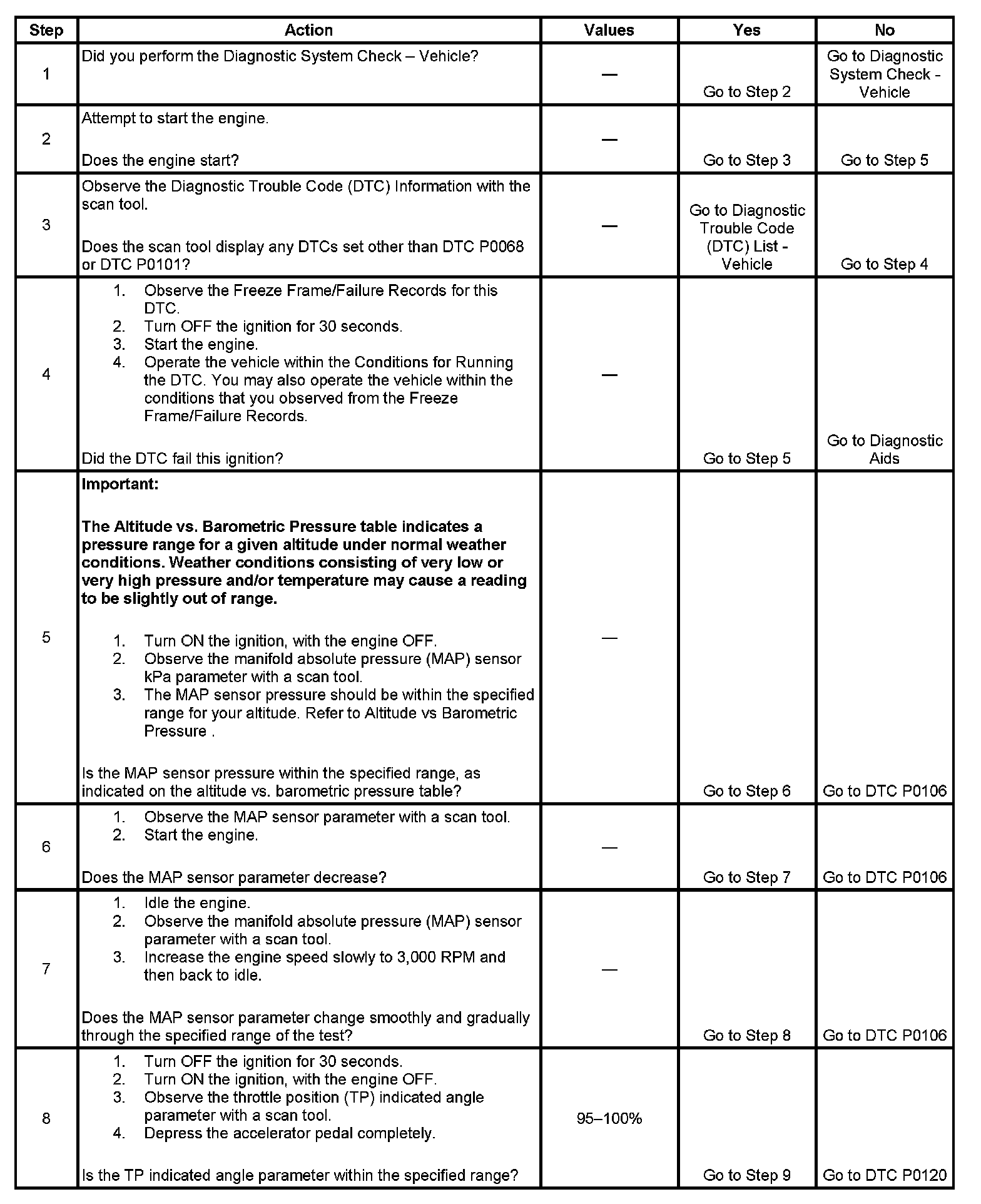 5. This step will determine if the MAP sensor pressure is within the proper range for a given altitude.