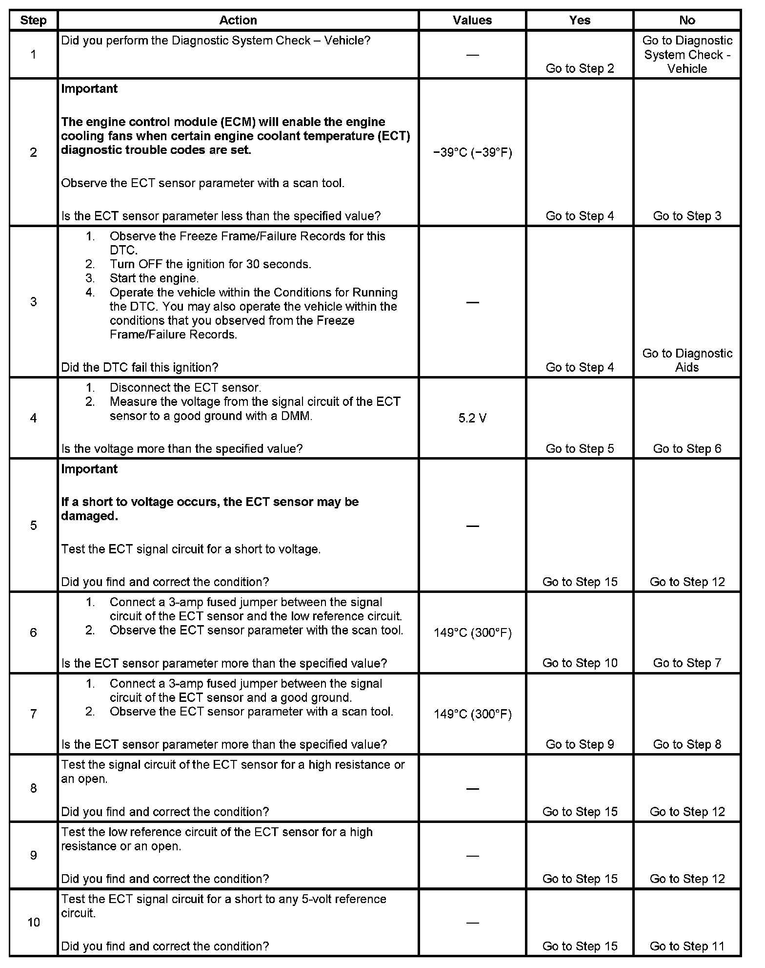 - Use the Temperature vs. Resistance table to test the ECT sensor. A skewed sensor could result in poor driveability conditions. Refer to Temperature vs Resistance.