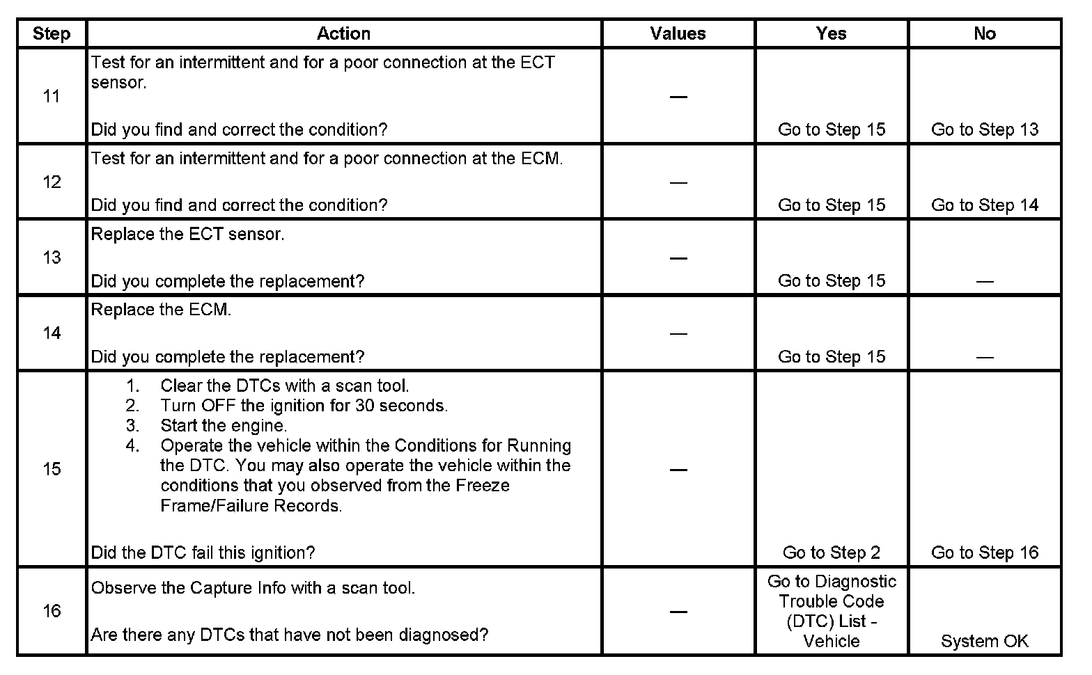 - A current DTC, Last Test Failed, clears when the diagnostic runs and passes.