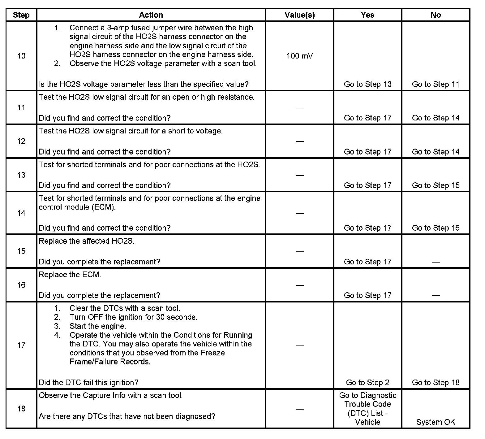- The ECM detects that the affected HO2S voltage parameter is between 410-490 mV for 150 seconds.