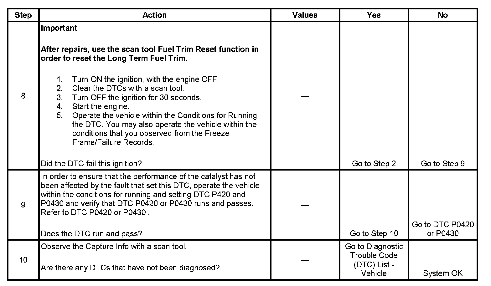 - A current DTC, Last Test Failed, clears when the diagnostic runs and passes.