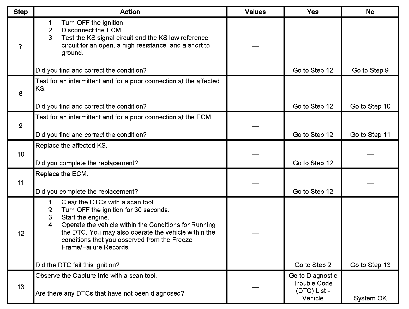 - Inspect the KS for physical damage. A KS that is dropped or damaged may cause a DTC to set.