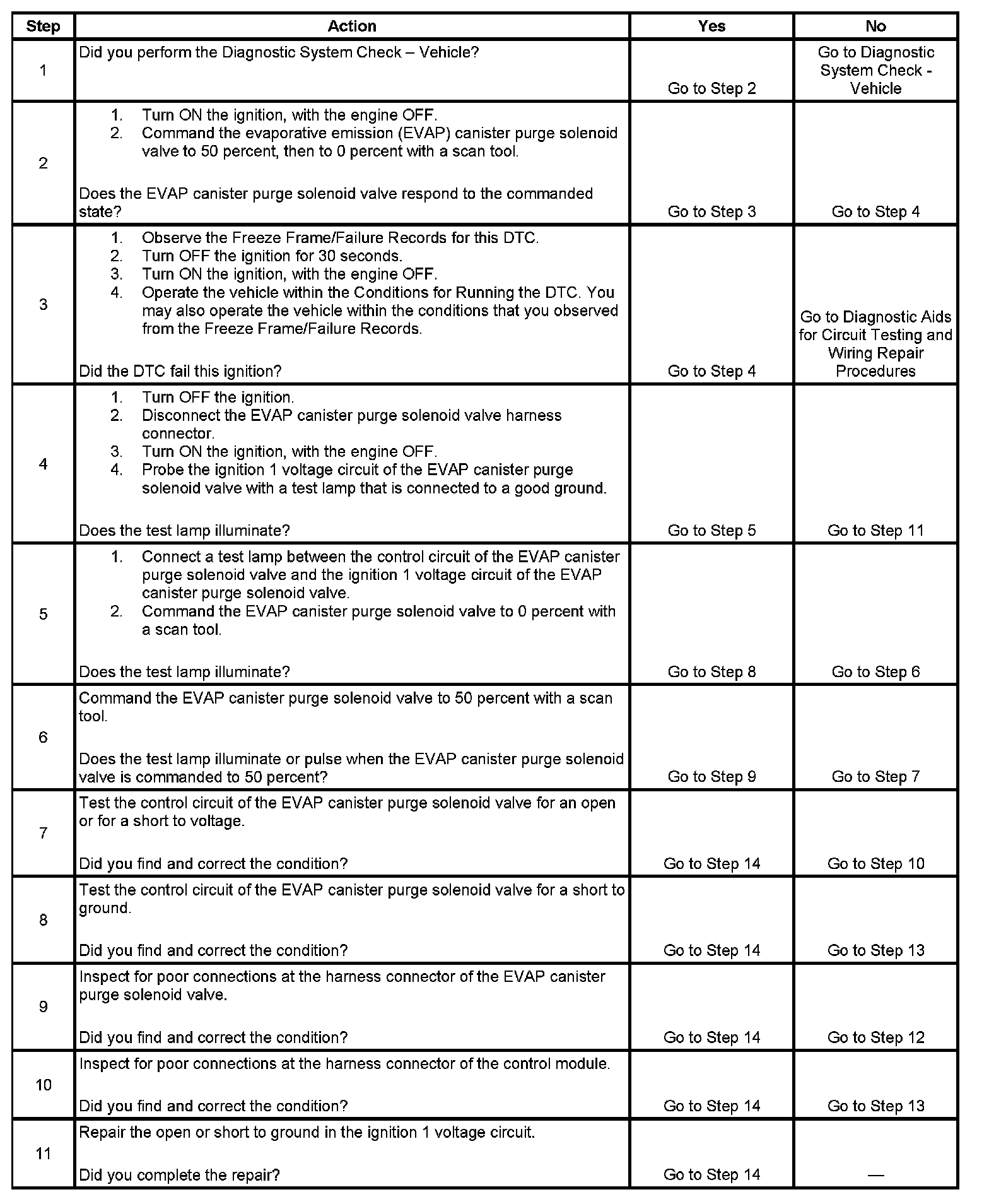 6. This step tests if a ground is constantly being applied to the EVAP canister purge solenoid valve.