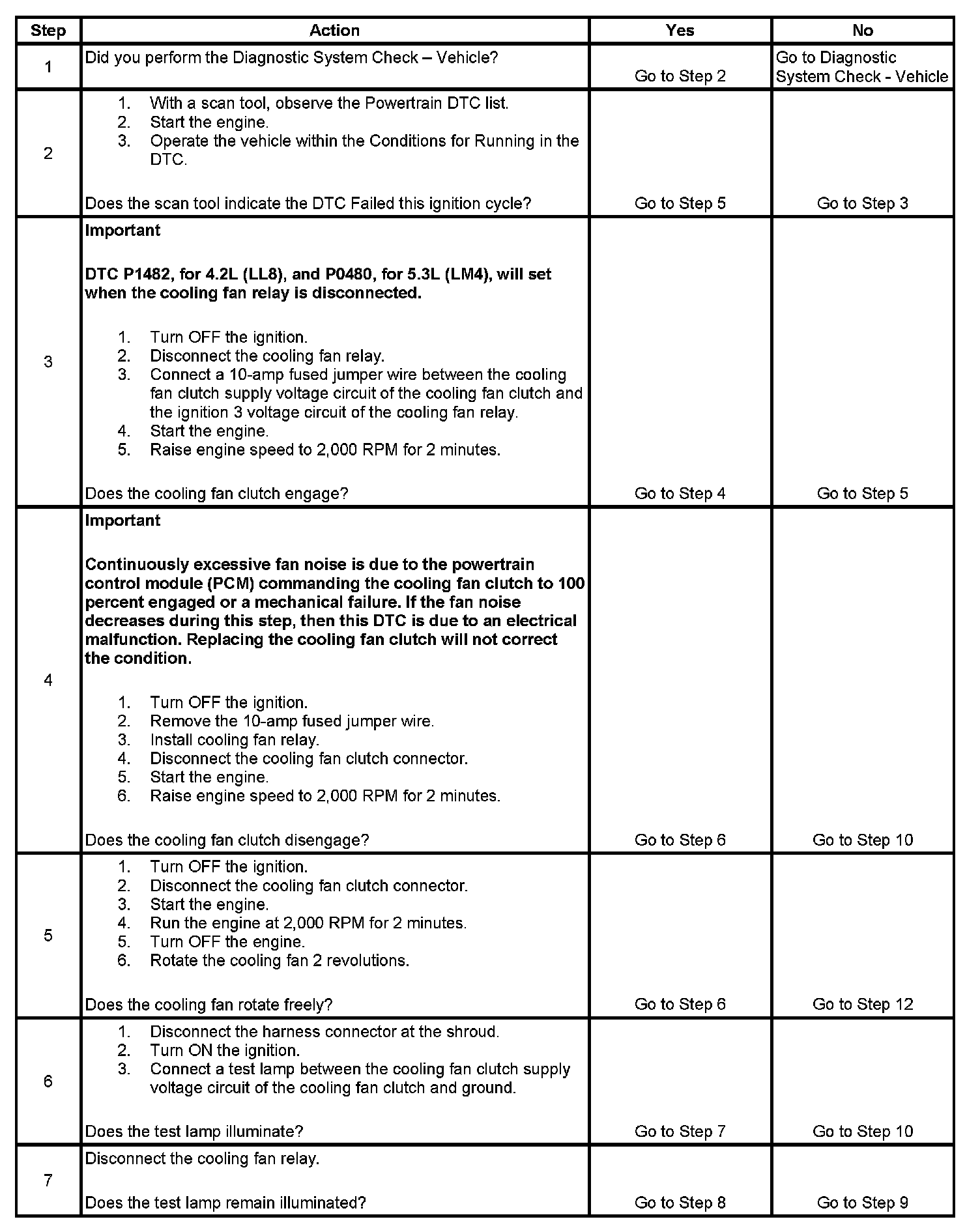 The cooling fan relay sends a pulse width modulation (PWM) signal (12-14 volts) to the cooling fan by the cooling fan clutch supply voltage circuit. The powertrain control module (PCM) uses the PWM signal, which controls the speed of the cooling fan clutch by controlling the position of the oil control valve inside the clutch. If the cooling fan clutch RPM is to high when the PCM is commanding 0 percent, DTC P0495 will set.