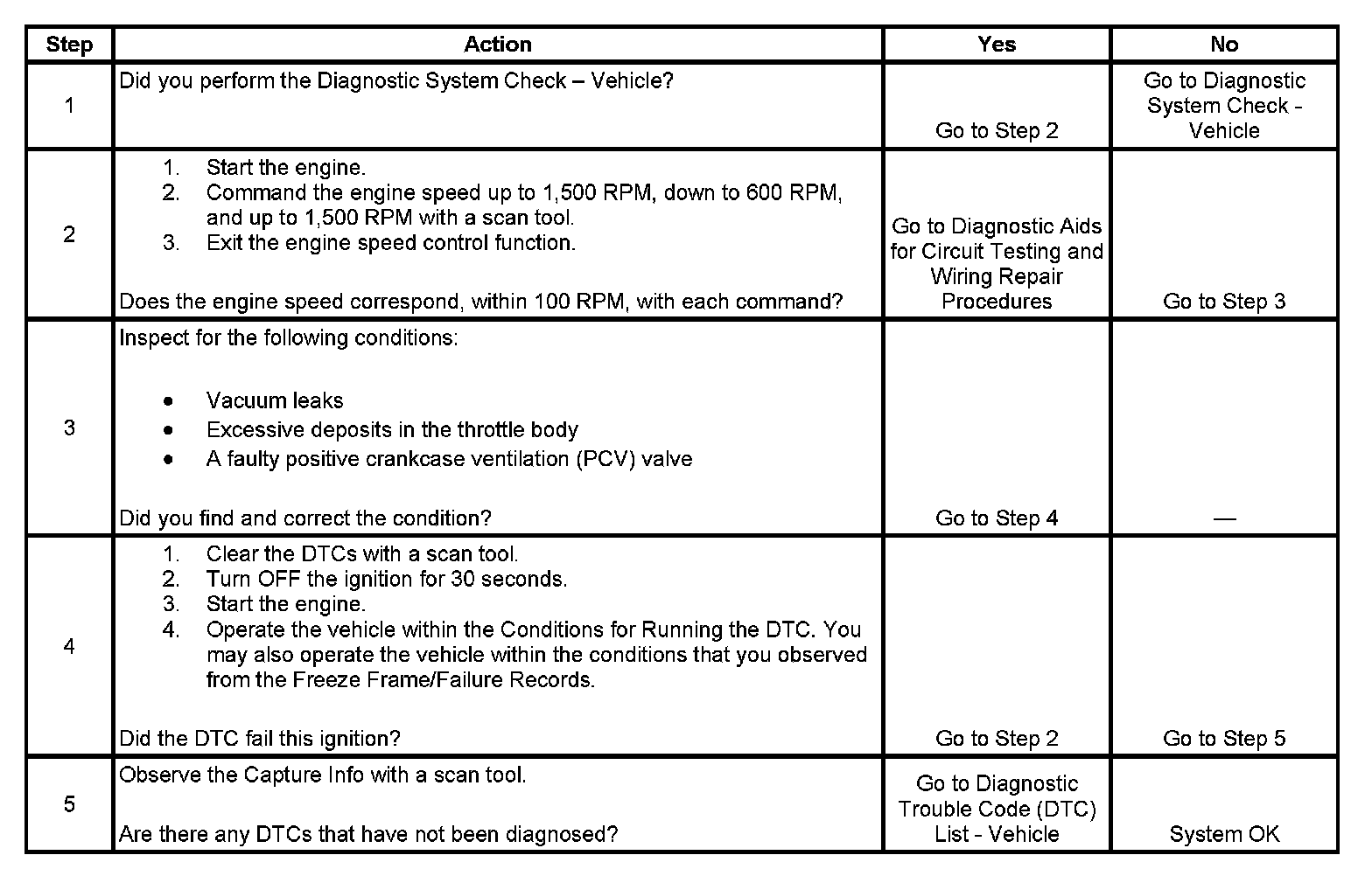 - The actual idle speed is approximately 200 RPM greater than the desired idle speed.
