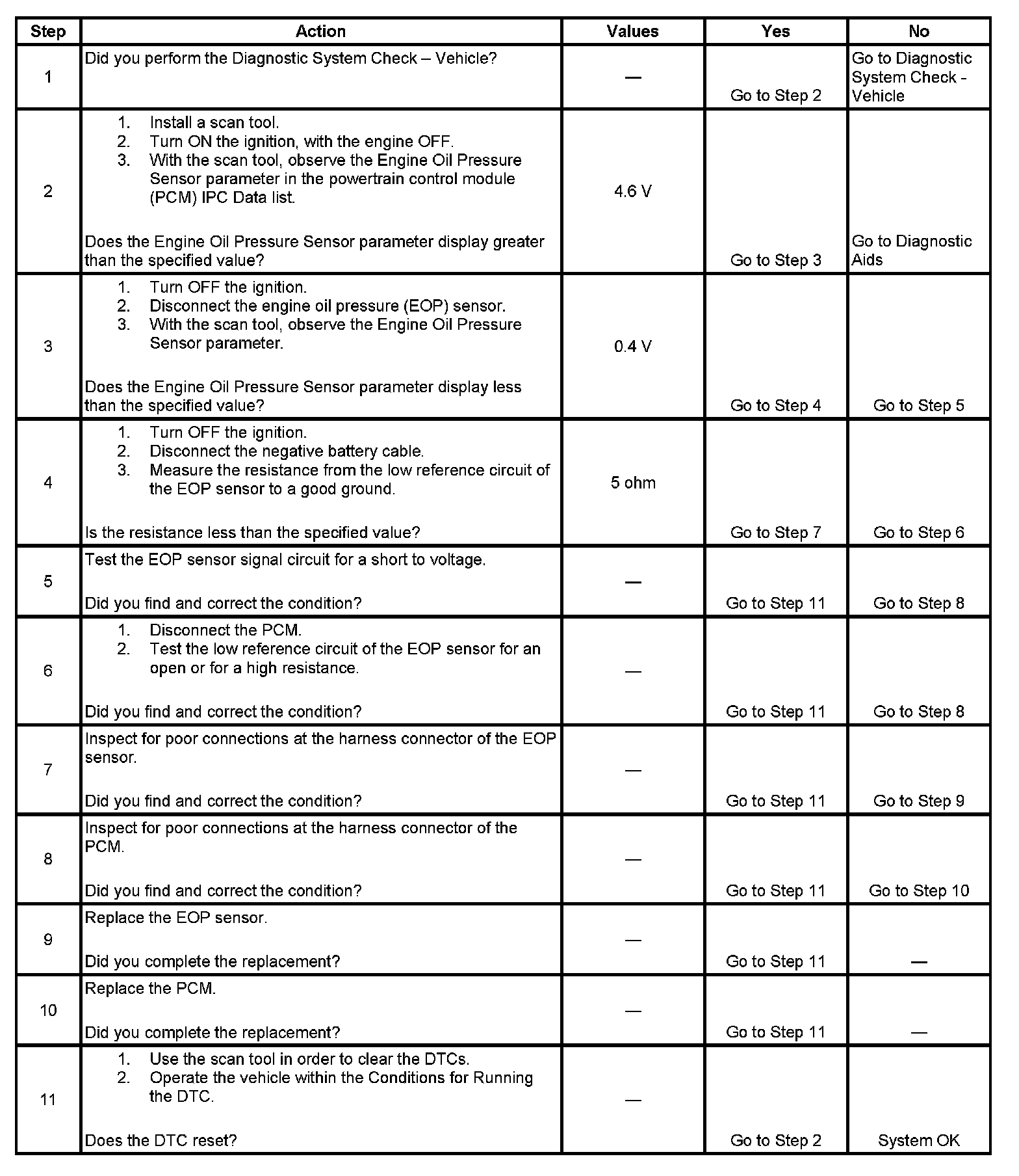 - The PCM detects that the EOP sensor signal circuit is greater than 4.6 volts.