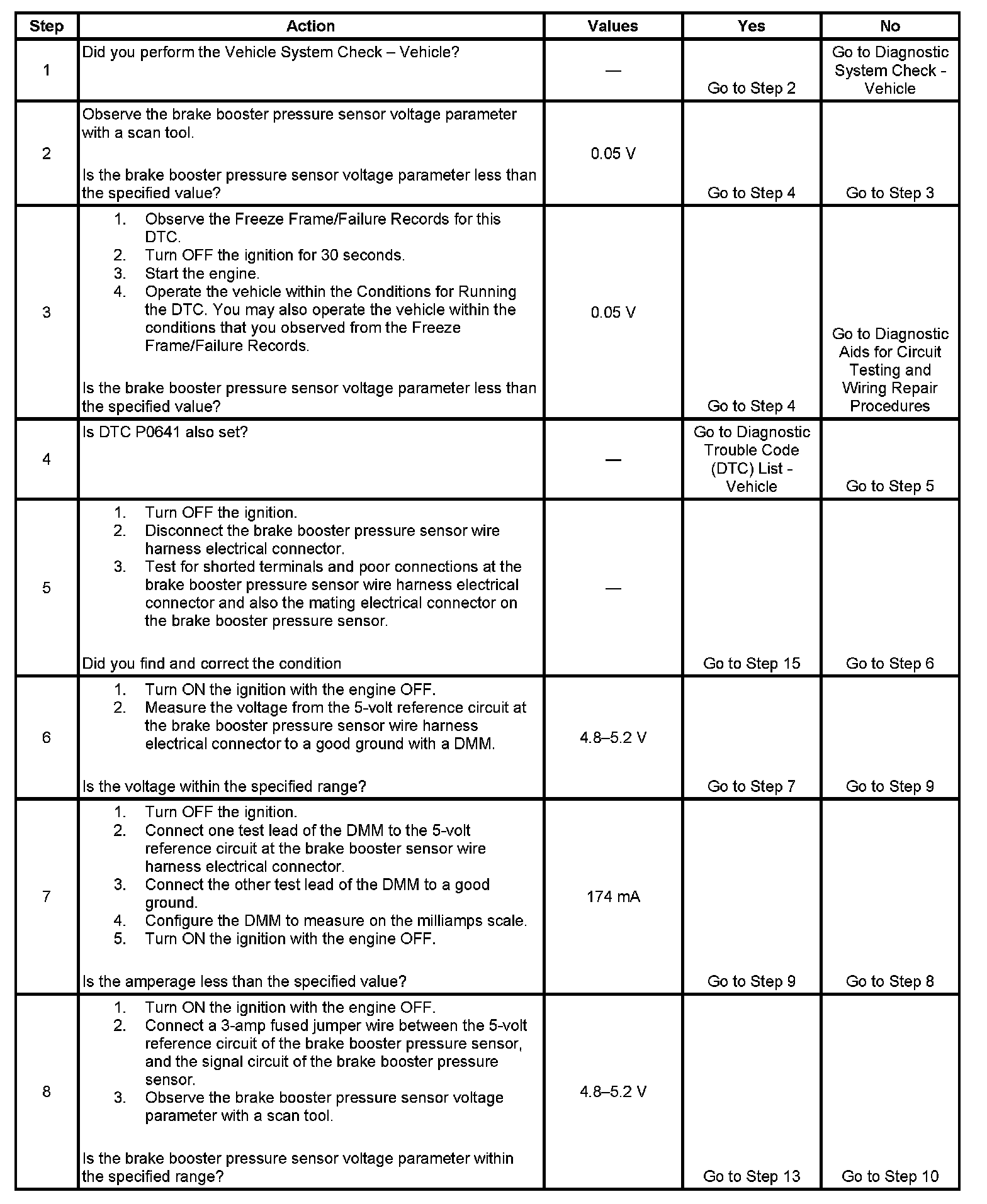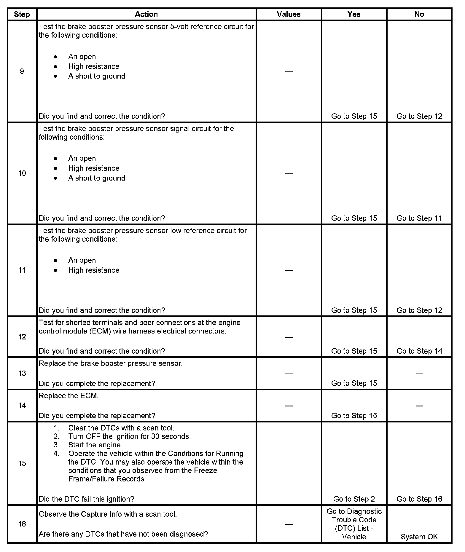 The ECM detects less than 0.04 volts on the brake booster sensor signal circuit for more than 12.5 milliseconds.