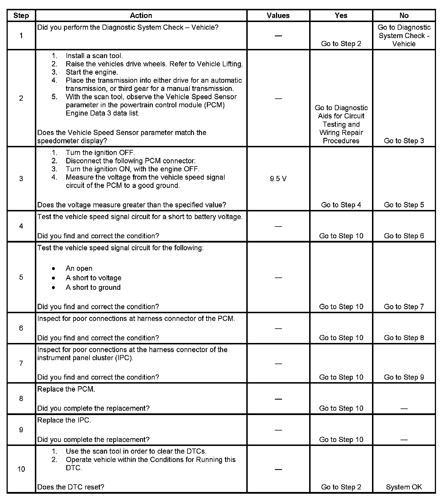 The powertrain control module (PCM) creates the vehicle speed output signal by pulsing the circuit to ground. The PCM monitors the voltage on the vehicle speed output circuit. If the PCM determines that the voltage is out of the normal operating range, a DTC sets.