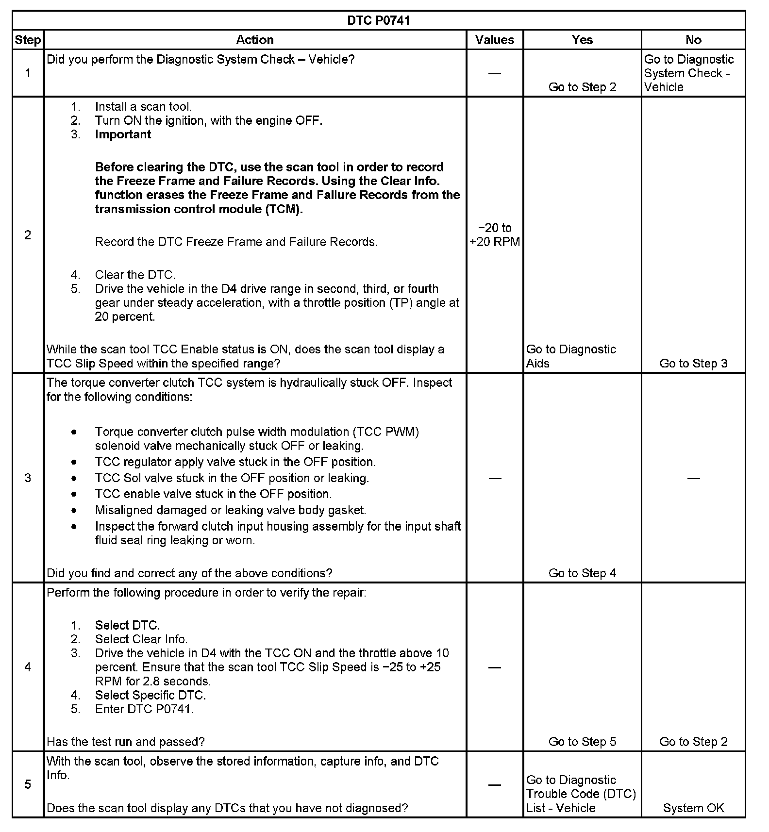 ^ The TCM stores DTC P0741 in TCM history.