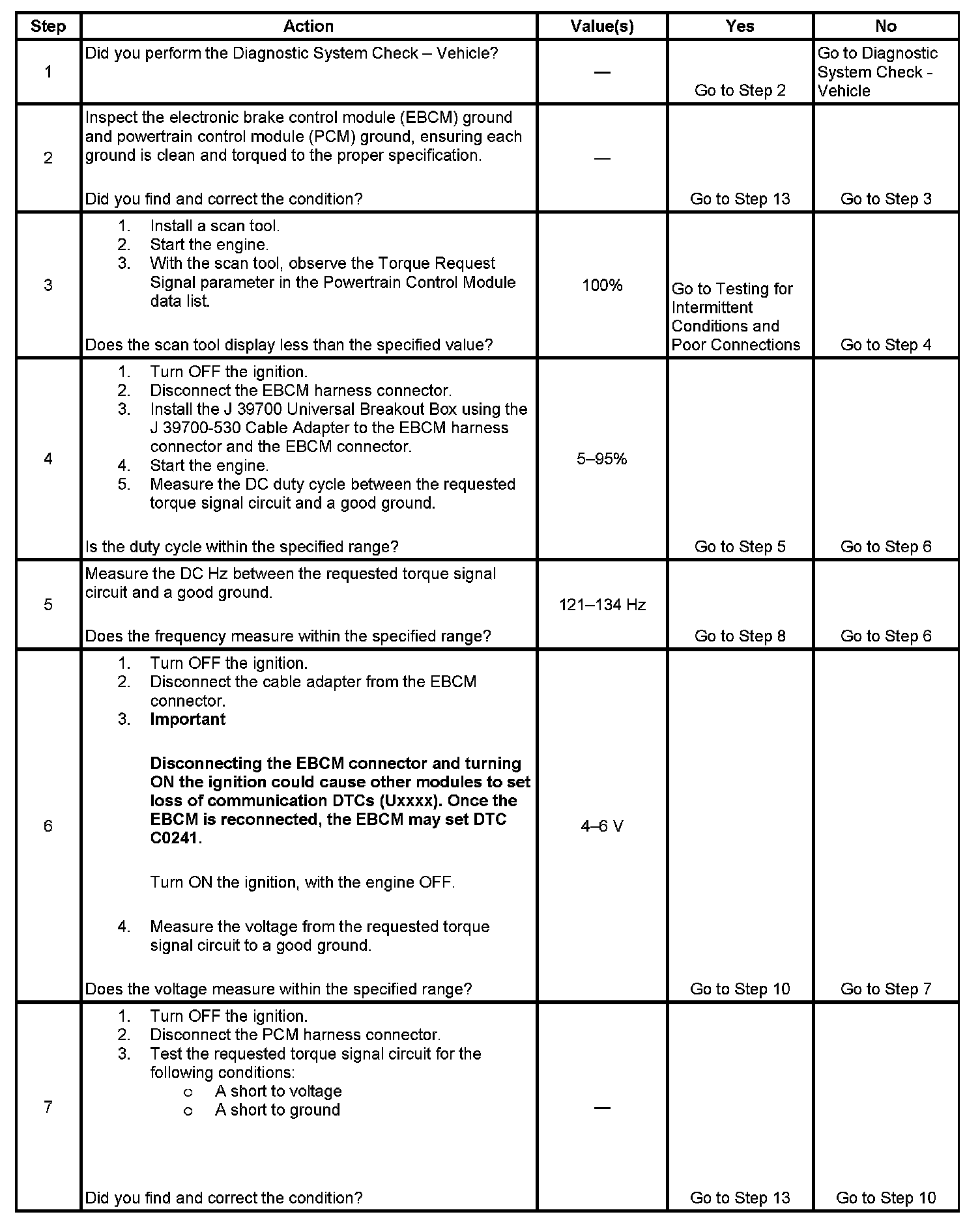 ^ DTC C0241 Powertrain Control Module (PCM) Indicated Requested Torque Malfunction