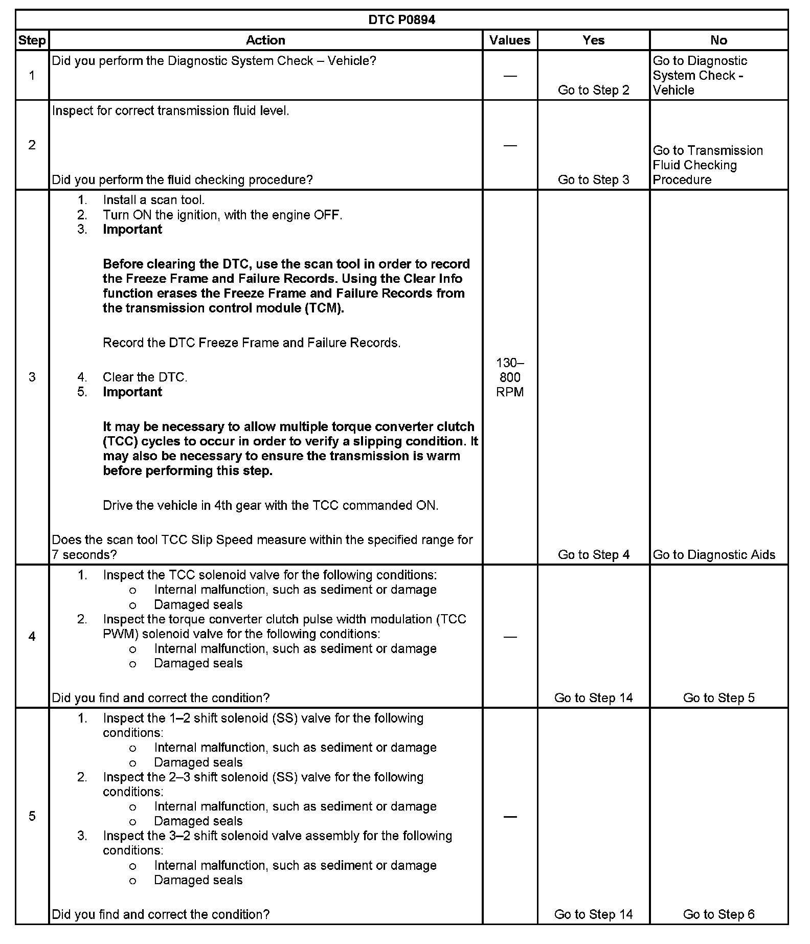 When the TCM detects excessive TCC slip when the TCC should be engaged, then DTC P0894 sets. DTC P0894 is a type B DTC.