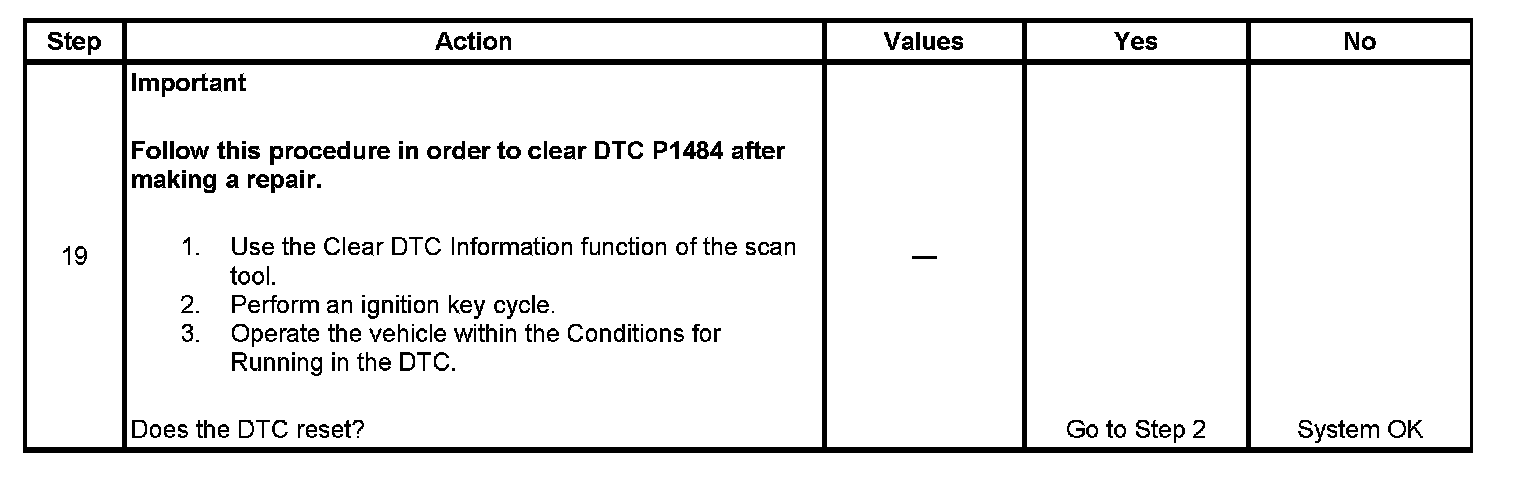 Important: Follow this procedure in order to clear DTC P1484 after completing a repair.