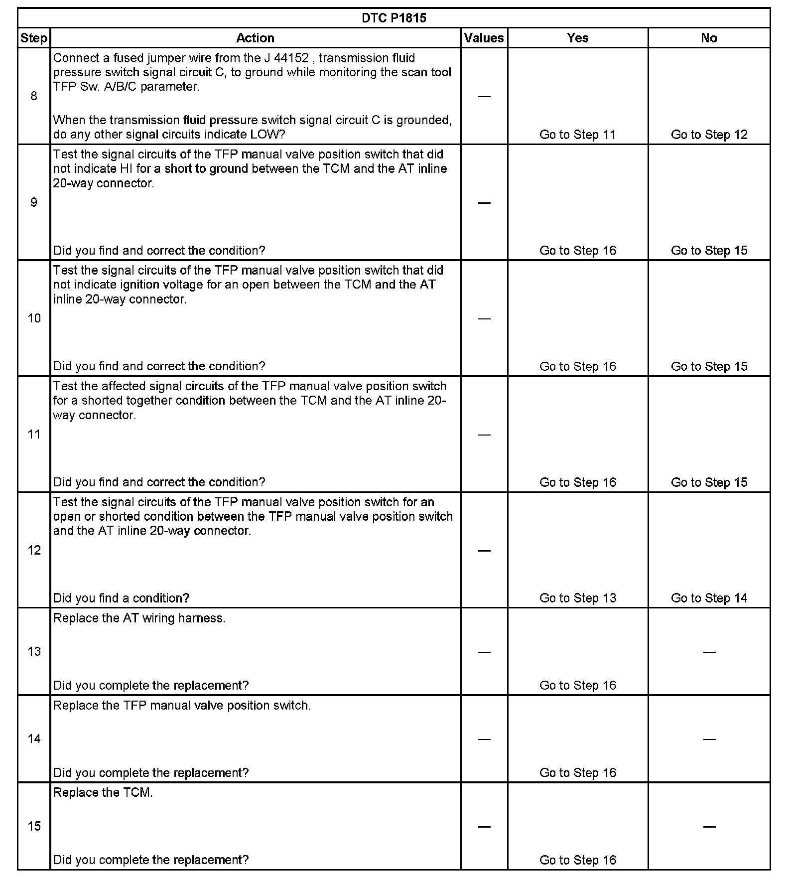 ^ No TFP DTCs P1810, P1815.