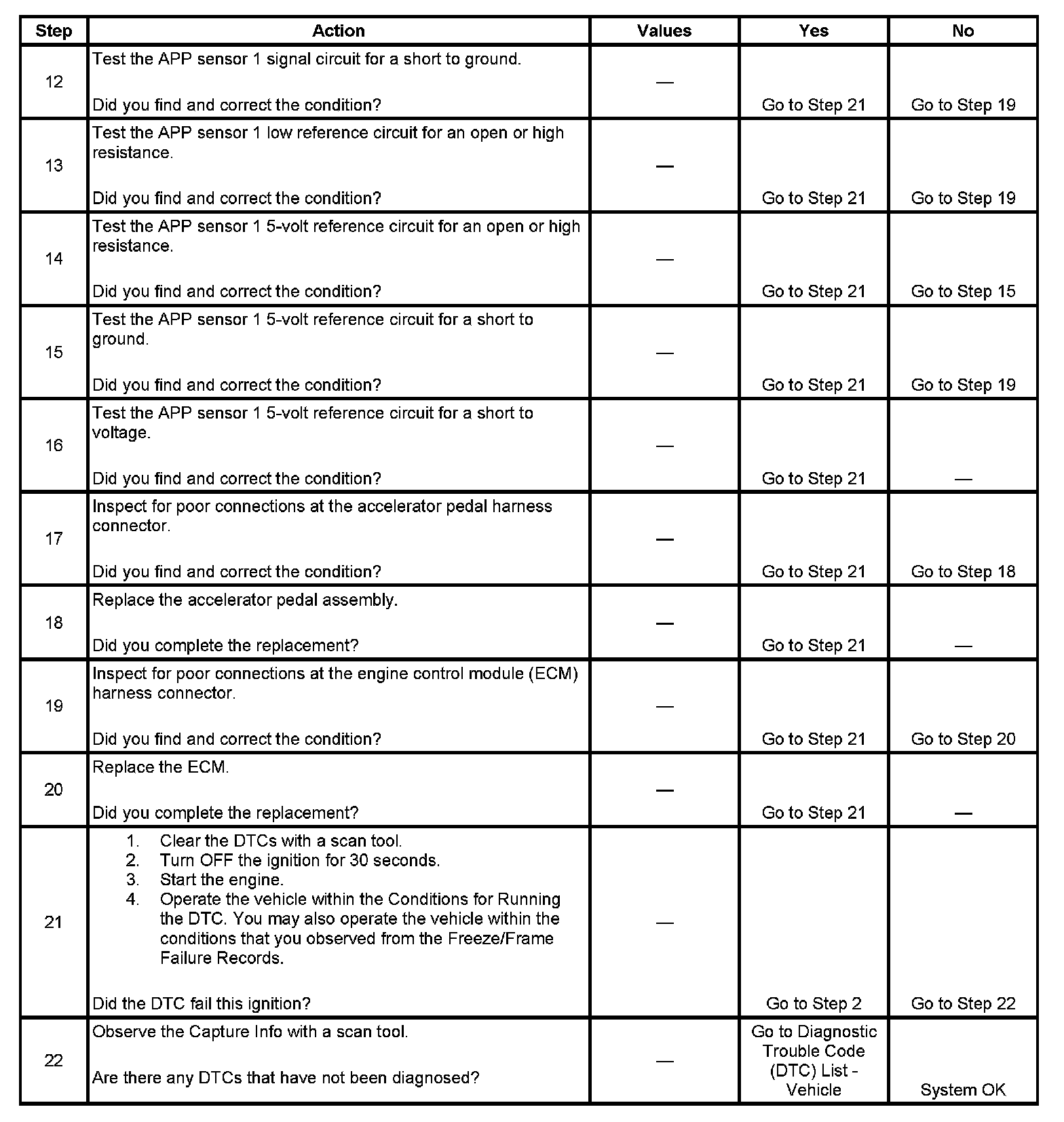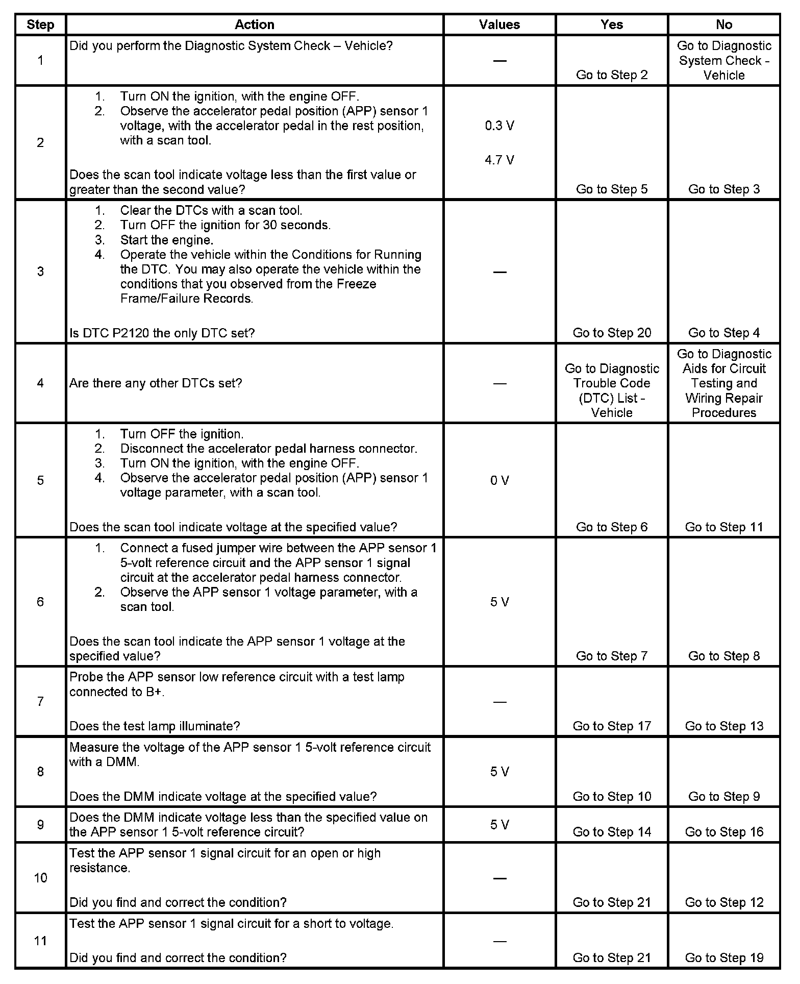 DTC P2120 Accelerator Pedal Position (APP) Sensor 1 Circuit