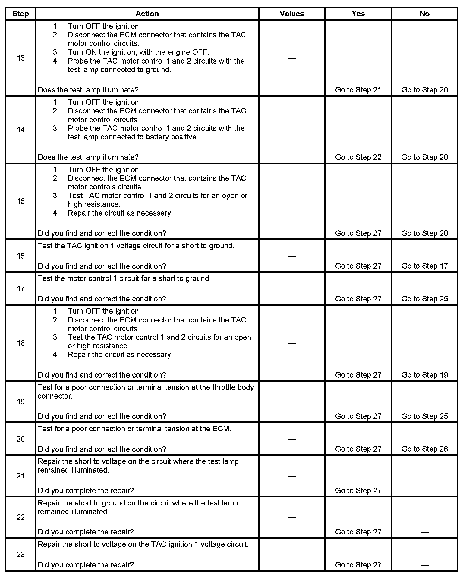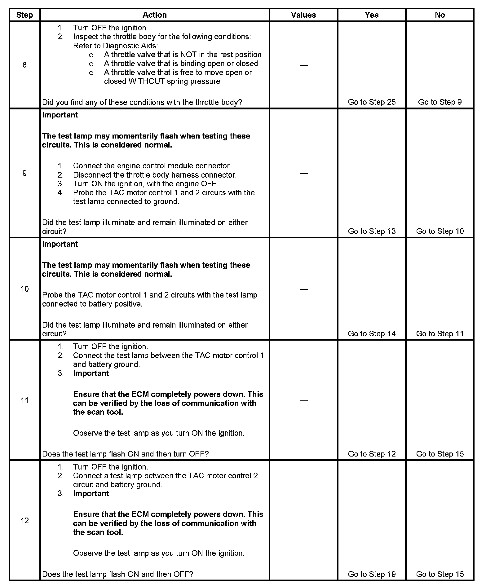 11. When the ignition is turned ON, the ECM operates the throttle control motor to verify the integrity of the system prior to start-up. This can be seen by the momentary flash of the test lamp as the ignition is turned ON.