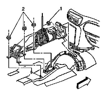7. Remove the console bracket from the vehicle, by removing the retaining nuts (1) from the center instrument panel (IP) bracket.
