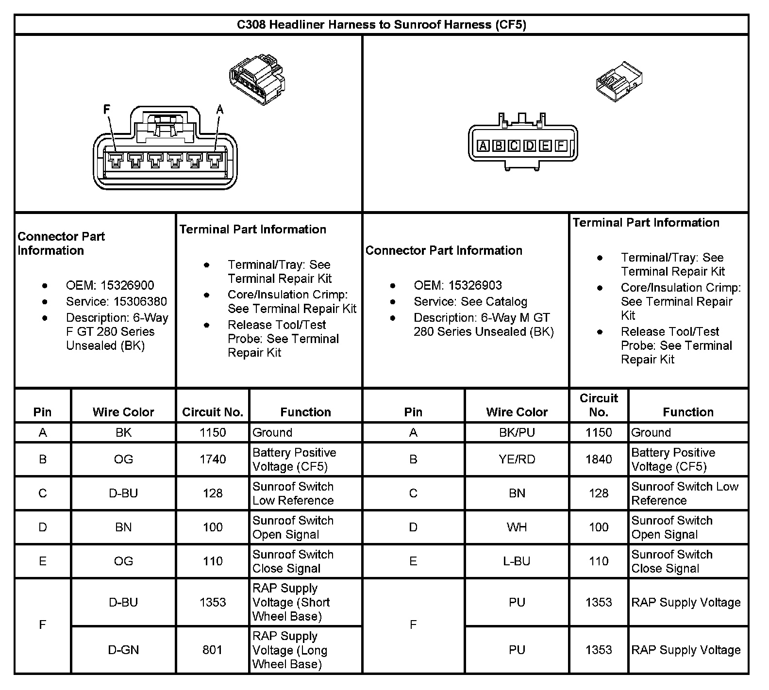 C308 Headliner Harness To Sunroof Harness (CF5):