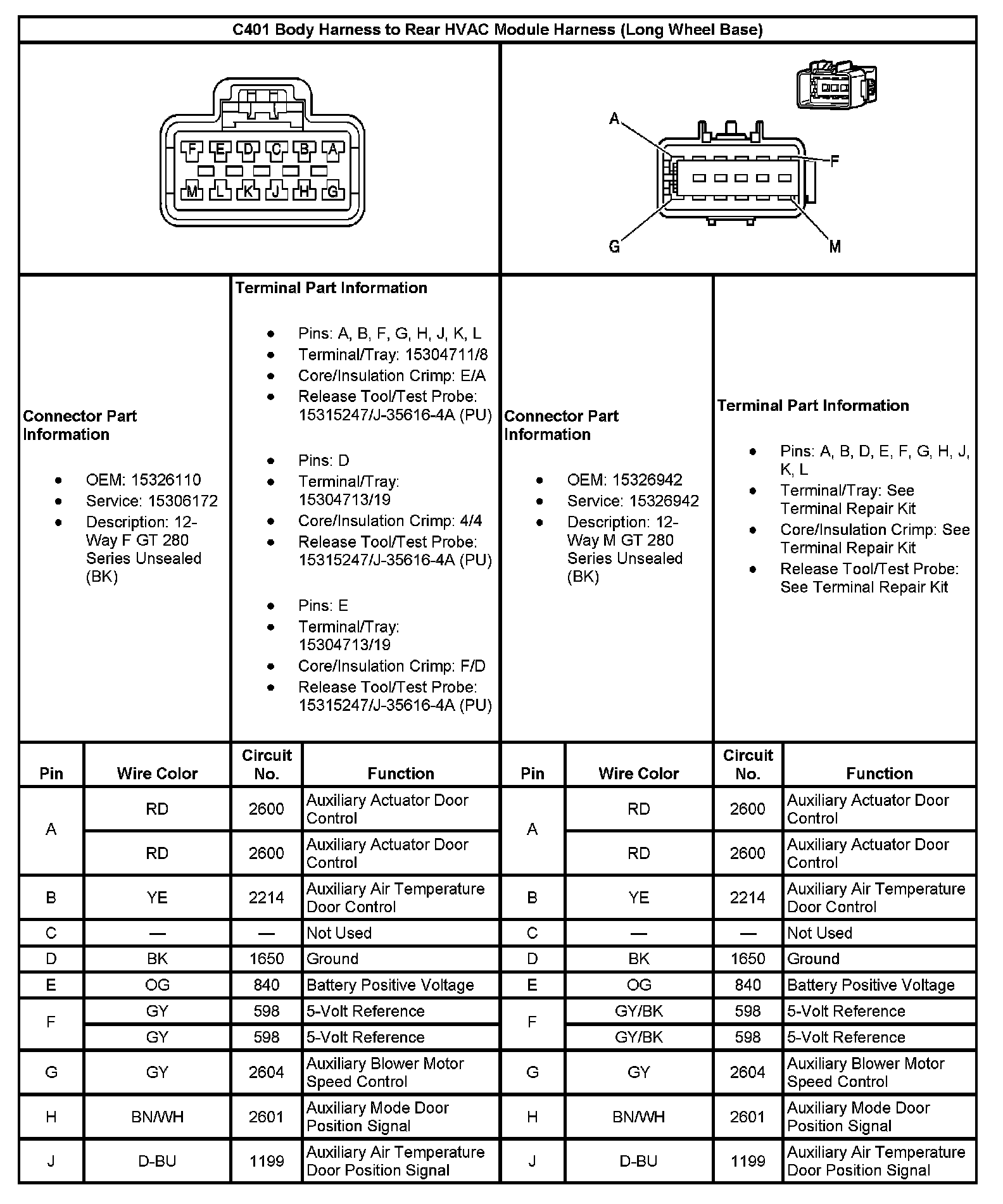 C401 Body Harness To Rear HVAC Module Harness (Long Wheel Base):