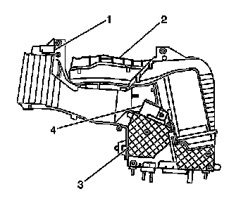 1. Install the heater core-auxiliary (2) to the HVAC module-auxiliary.