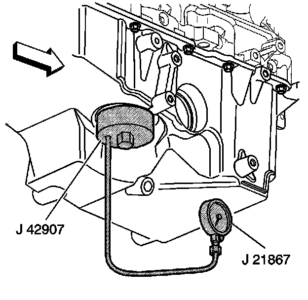 7. Install the J 21867 (2), or equivalent to the J 42907 (1).