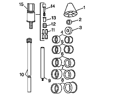 2. Select the expanding driver (4-8) and washer (2 or 3) from the J 33049. Refer to Piston and Connecting Rod Assemble.