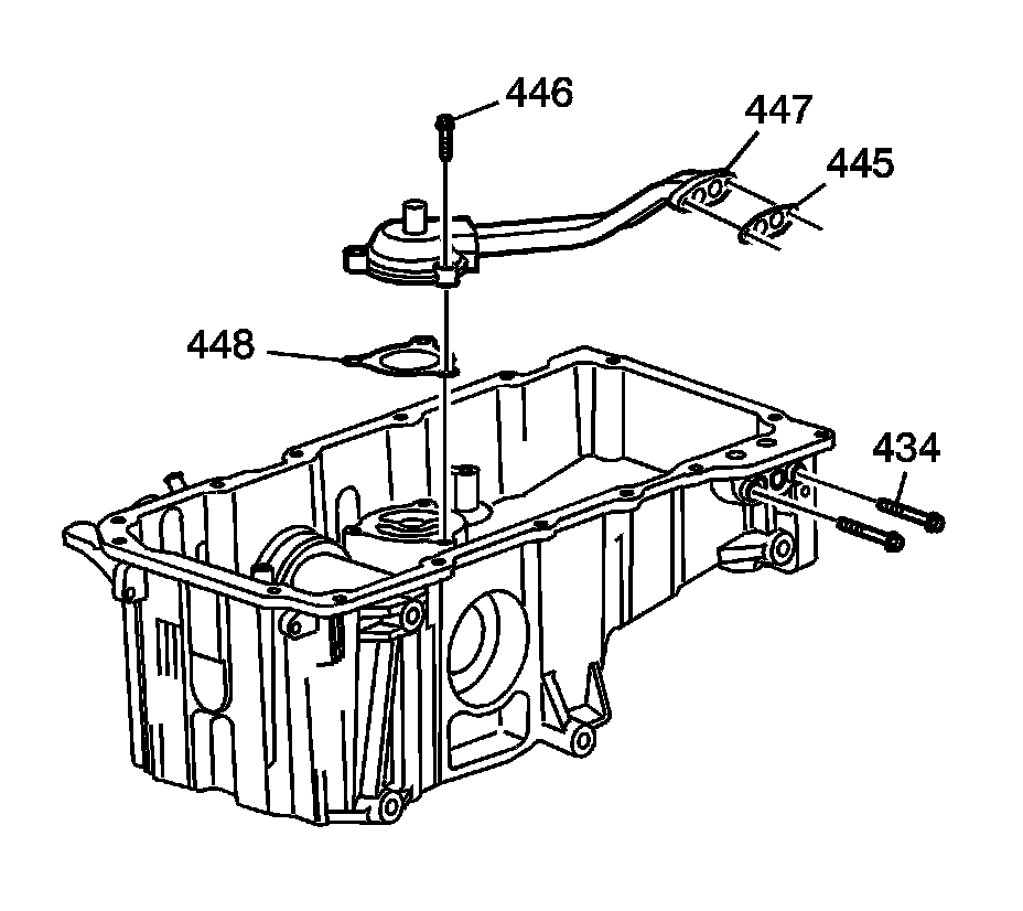 1. Remove the oil filter tube bolts (435, 446) and gaskets (445, 448).