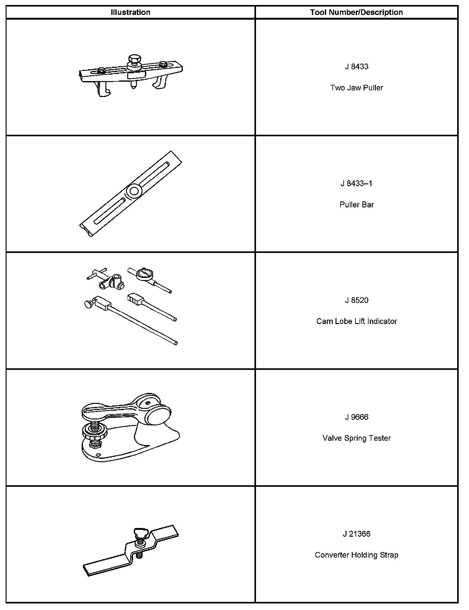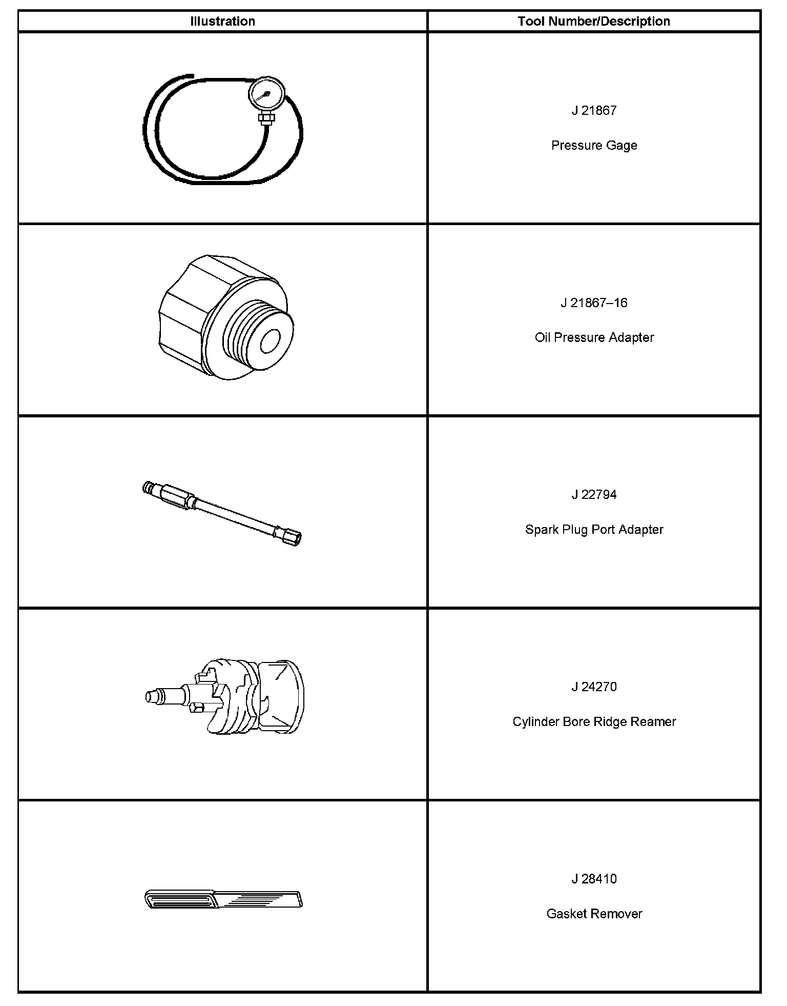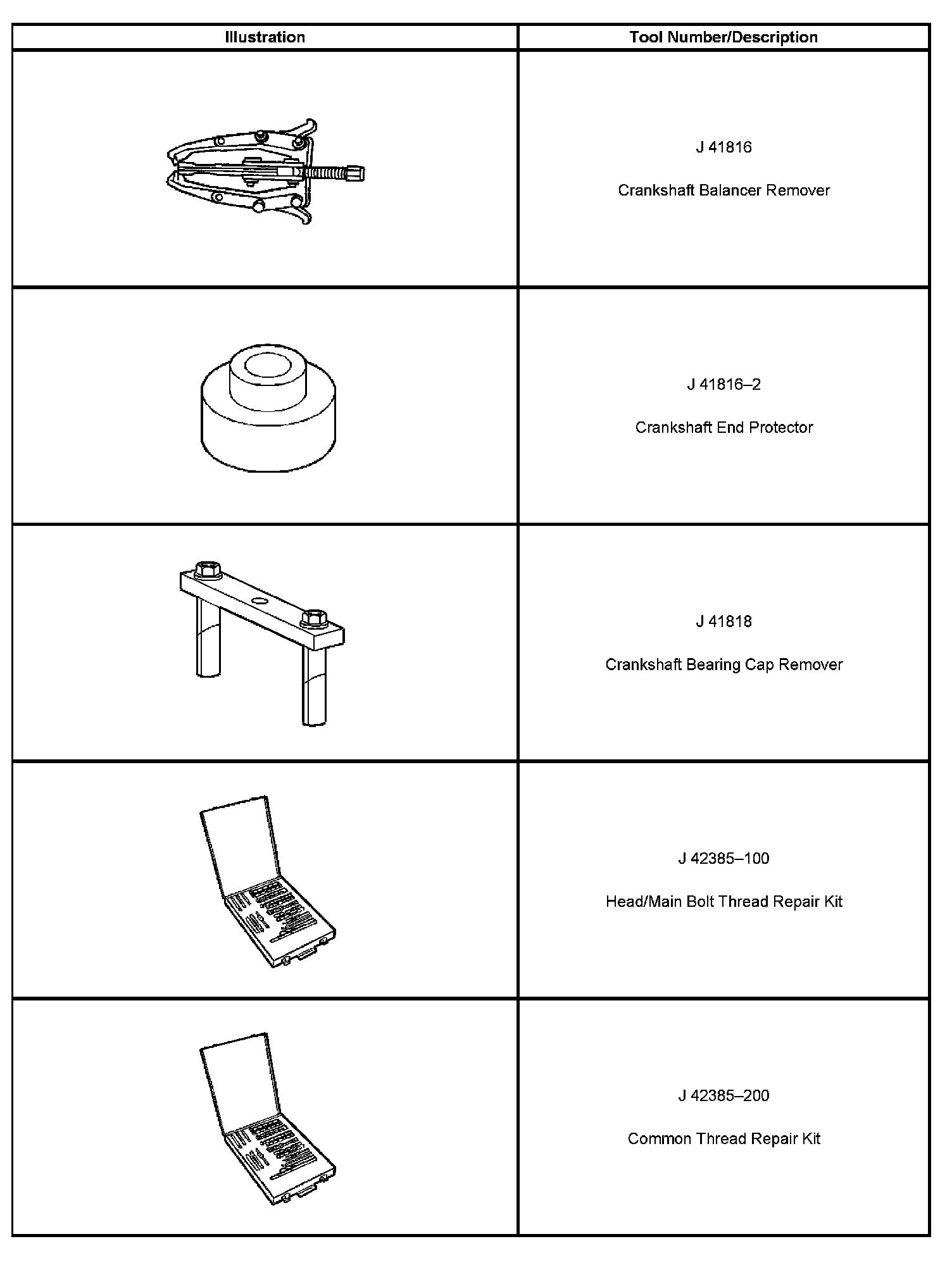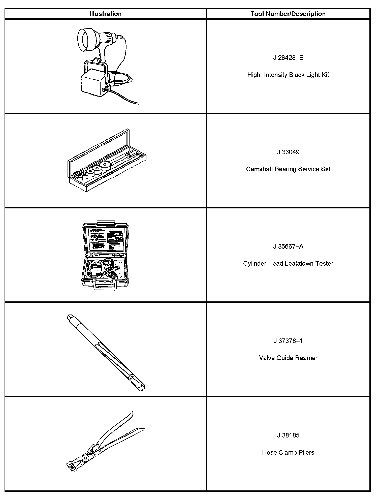 Special tools are listed and illustrated throughout this section, with a complete listing at the end of the section. These tools, or their equivalents, are specially designed to quickly and safely accomplish the operations for which they are intended. The use of these special tools also minimize possible damage to engine components. Some precision measuring tools are required for inspection of certain critical components. Torque wrenches and a torque angle meter are necessary for the proper tightening of various fasteners.