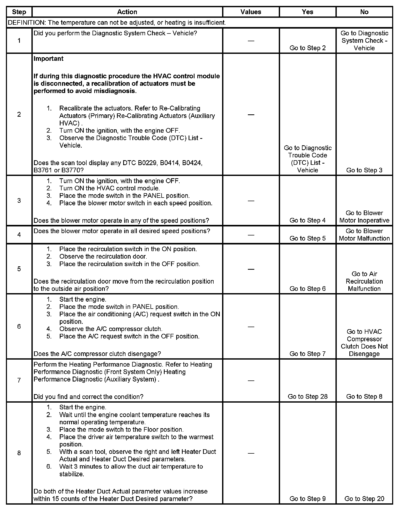 The number below refers to the step number in the diagnostic table.