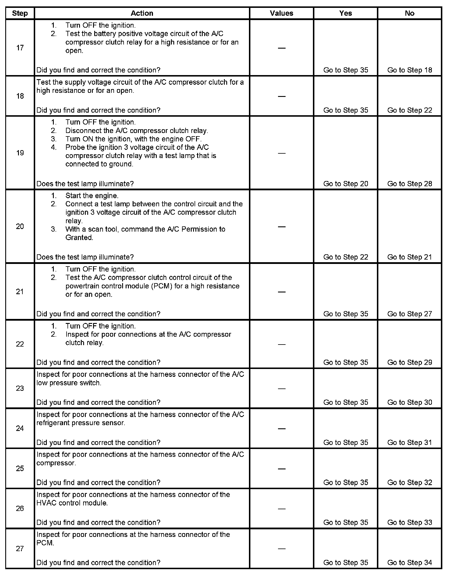 4. This step ensures that the HVAC control module is receiving an input from the A/C switch.