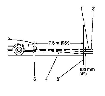 - Using this measurement, mark the horizontal centerline of the fog lamp (1) on the target screen directly in front of the vehicle.