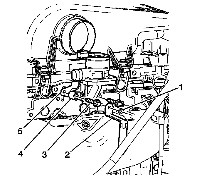 5. Remove the transmission fluid level indicator tube (2) from the AIR solenoid valve stud (3).