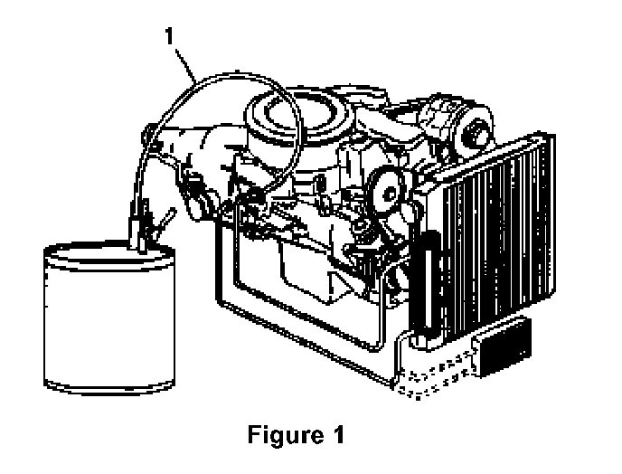 1. Connect a hose from the transmission cooler return outlet side to an empty container capable of measuring fluid level as shown.