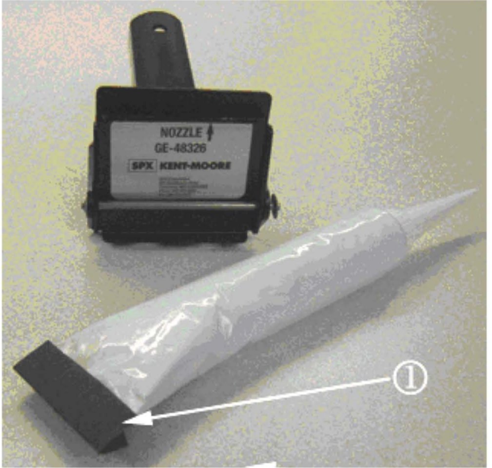 To address this concern the engine sealant is now being released in a 0.075 kg (75 gram) squeeze tube (packaged six to the carton with nozzles) along with a new available service tool the Kent Moore Sealant Dispenser GE-48326. The Kent Moore Sealant Dispenser GE-48326 can be obtained by contacting Kent Moore at 800-345-2233.