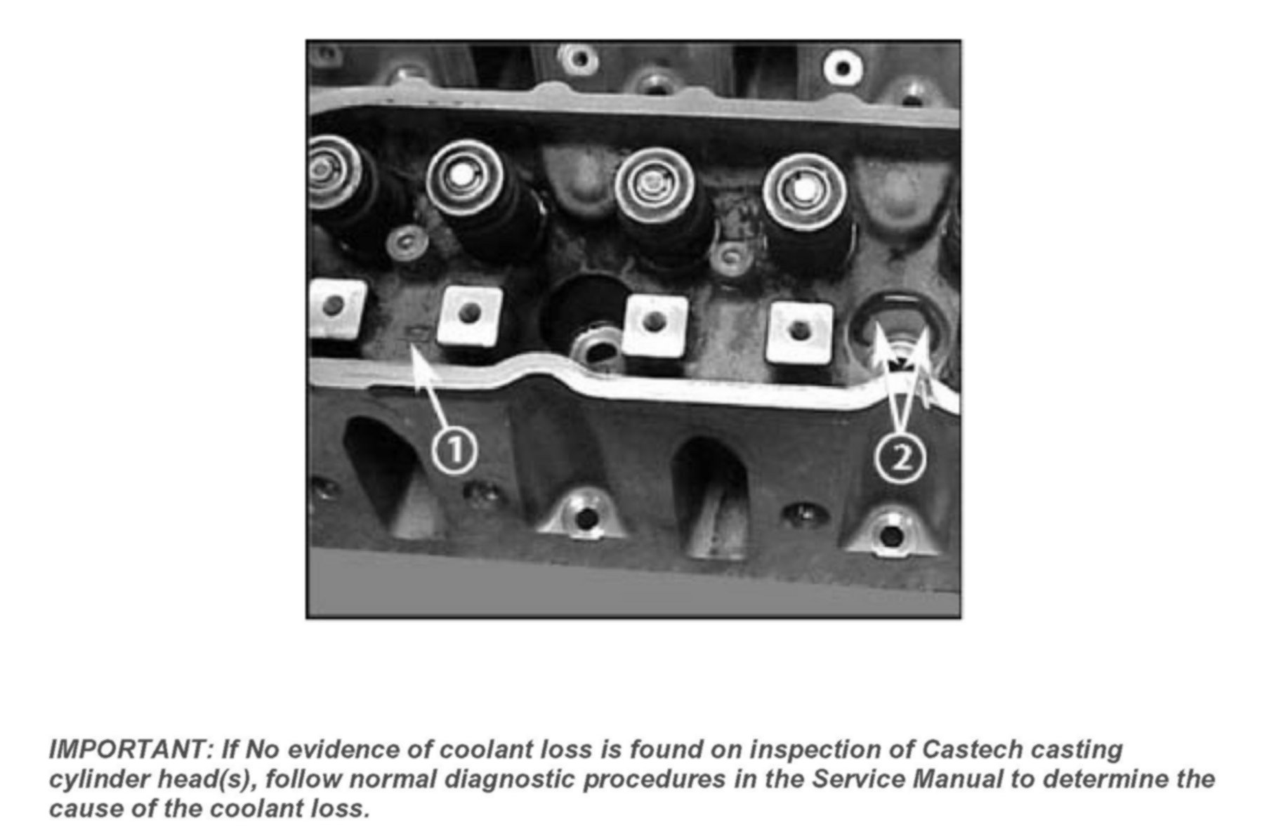 If No evidence of coolant loss is found on inspection of Castech casting cylinder head(s), follow normal diagnostic procedures in the Service Manual to determine the cause of the coolant loss.