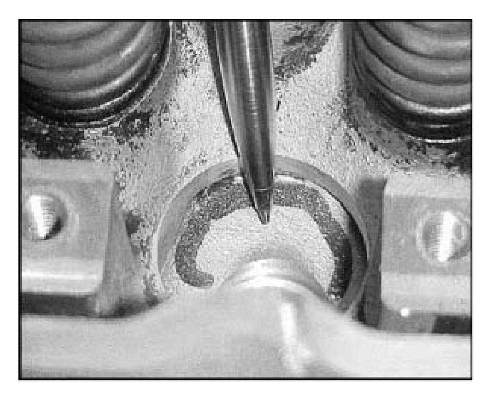 Inspect the cylinder head assembly to determine if the casting was manufactured by Castech. This can be accomplished by inspecting for their casting logo located on top of the intake port, under the rocker arm support rail and in the spring deck cavity portion of the cylinder head.