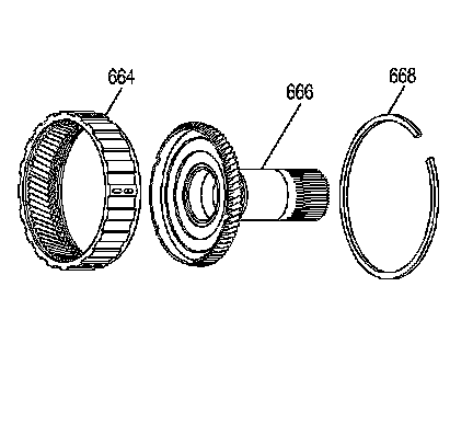 1. Remove the reaction carrier shaft/internal gear retainer (668) and the reaction carrier shaft (666) from the input internal gear (664).