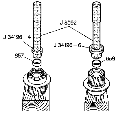 1. Using J 34196-4 which is part of kit J 34196-B with J 8092, install the input sun gear front bushing (657).