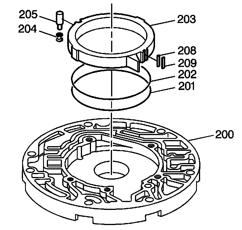 6. Remove the pump slide (203), pump slide support seal (208) and the pump slide seal (209).