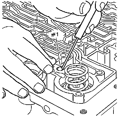 1. Inspect the valve body spacer plate and the solenoid screens (49, 50) for damage or debris.Replace the solenoid screens (49, 50) if necessary.