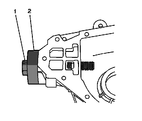 1. Install the J29369-1 (2) and the J2619-01 (1) to the inboard or oil pan side seal as shown.