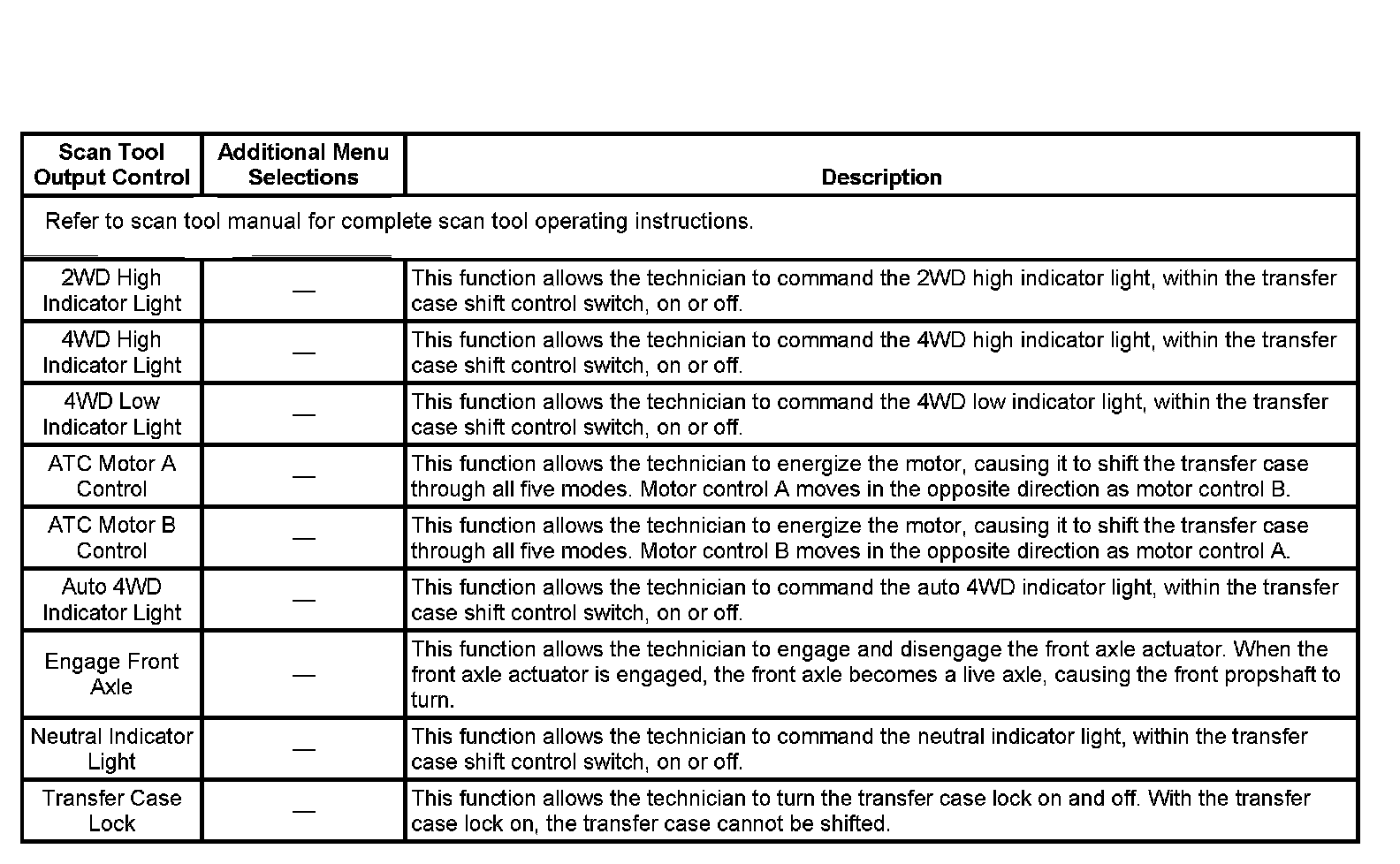 Scan Tool Output Controls: