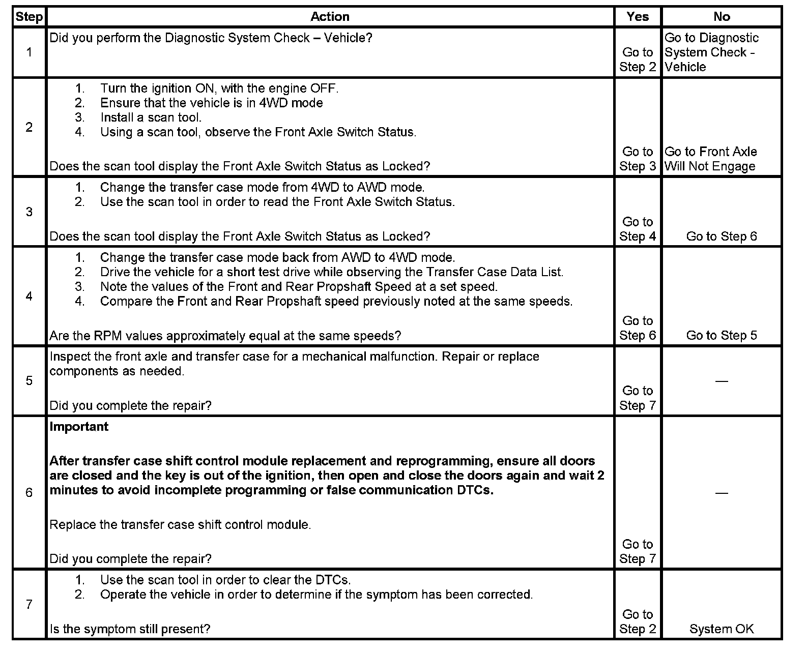 2. This step helps determine whether the front axle switch is functioning properly.