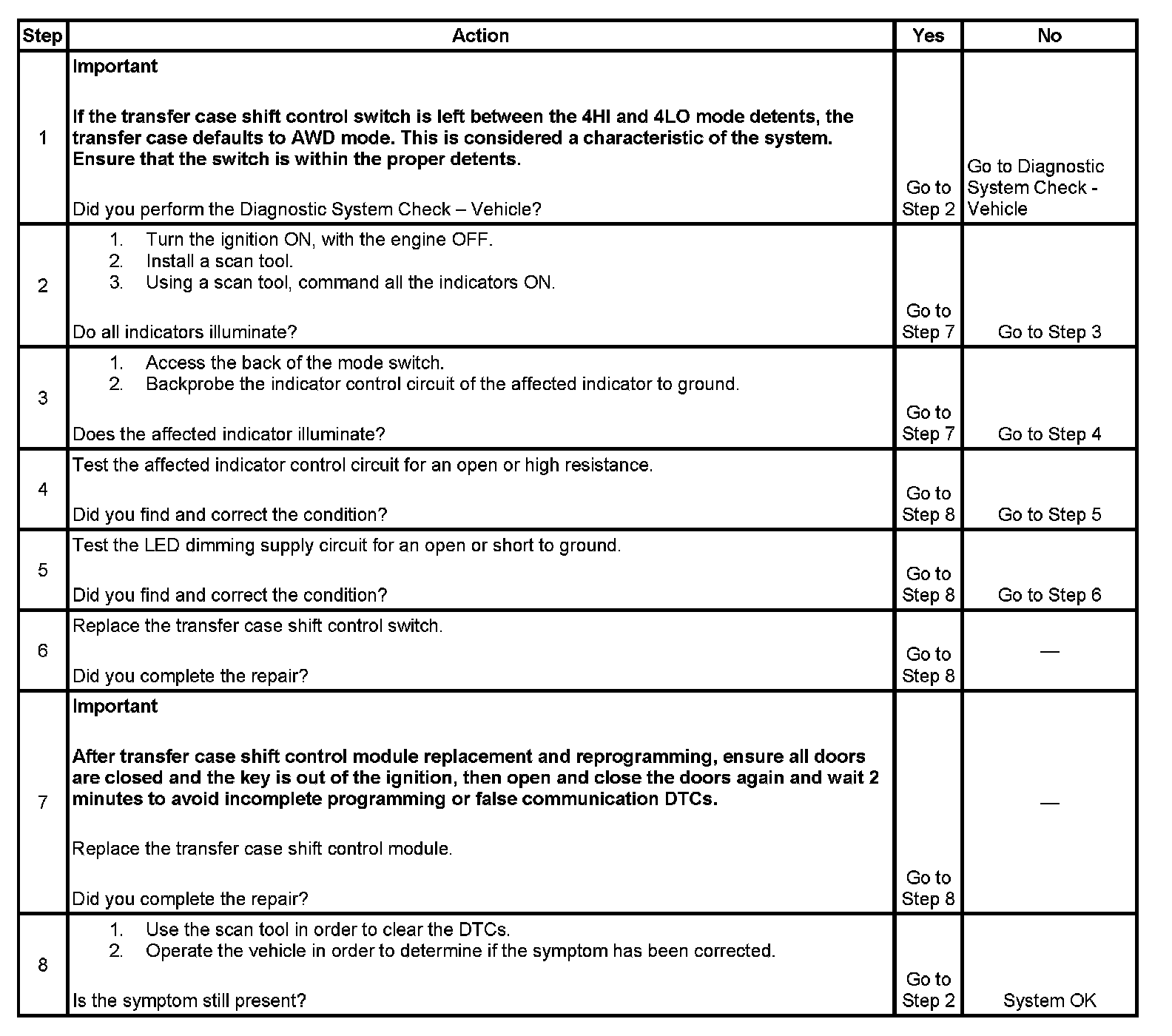 2. This step tests the transfer case electrical control of the lamp circuits.