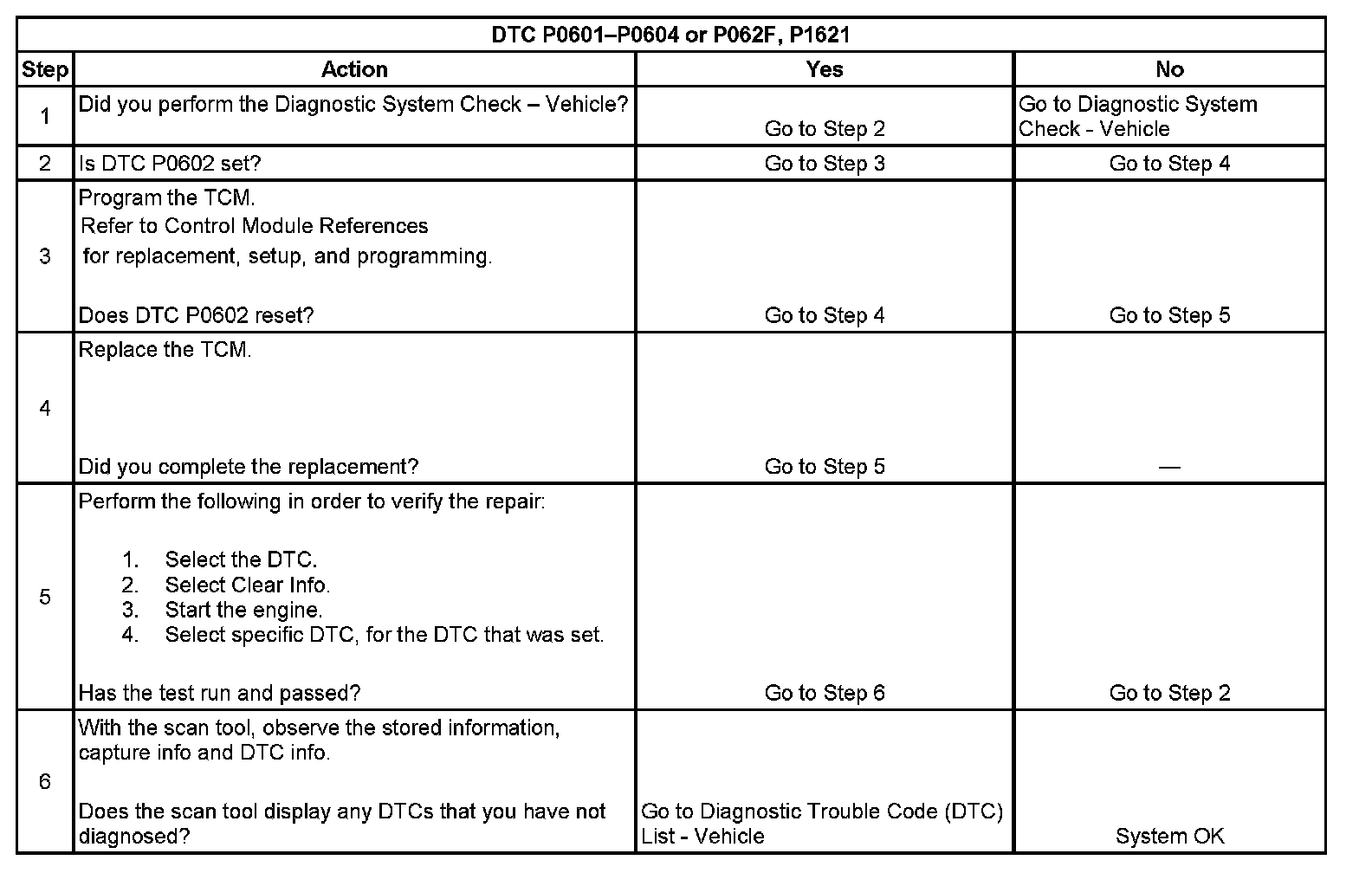 ^ The TCM stores DTC P0601, P0602, P0603, P0604 or P062F, P1621 in TCM history.