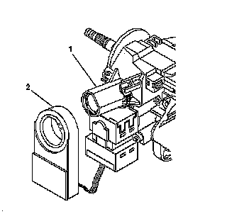 1. Install the theft deterrent control module (2) onto the ignition lock cylinder case assembly (1).
